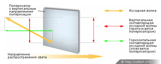 При прохождении через первый поляризатор свет от ламп подсветки становится линейно поляризованным.