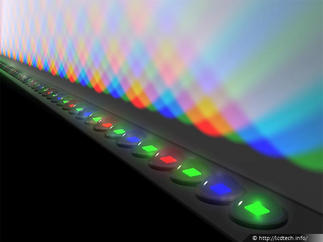 Поэтому на данный момент луший цветовой охват позволяют достичь модули подсветки на основе RGB-пакетов светодиодов (см. ниже).