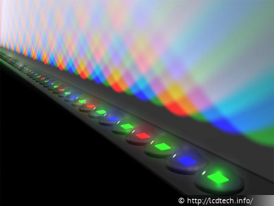 Кроме того, в отличие от «белых» светодиодов, пакет RGB-LED позволяет в оперативном режиме корректировать цветовую температуру подсветки за счет раздельного управления интенсивностью свечения каждой группы светодиодов основных цветов.
