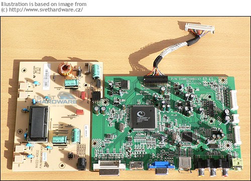 Diese Sammlung repräsentiert eine Galerie von Beispielen des elektrischen und mechanischen Innenlebens von LCD Monitoren. Bilder sind teilweise reproduziert worden von den Seiten pcpop.com, ferra.ru, svethardware.cz, pconline.com.cn, www.d43d.ruund manche Bilder von Beiträgen von verschiedenen Foren.