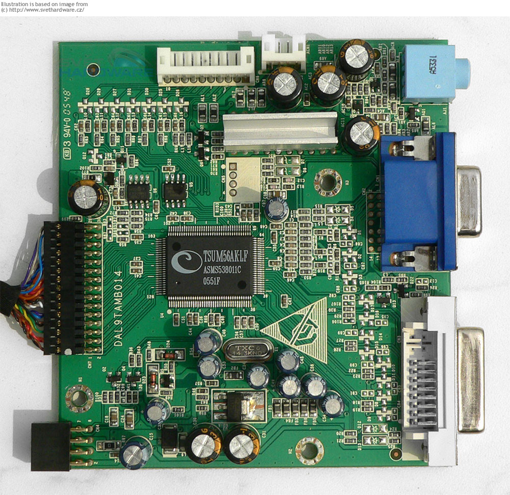 This collection represents a sample gallery of LCD-monitors interior case construction and electronic parts.