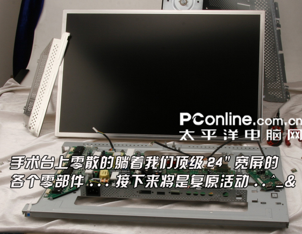 This collection represents a sample gallery of LCD-monitors interior case construction and electronic parts.
