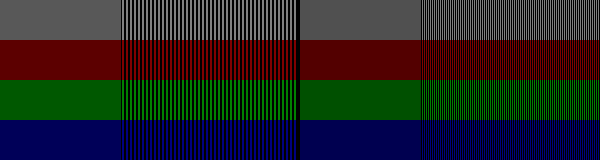 Правая часть содержит чередующиеся линии толщиной 1 пиксель, а левая линии по 2 пикселя толщиной.
