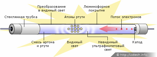 Рис. 11. Устройство CCFL (флюоресцентная лампа с холодным катодом)
