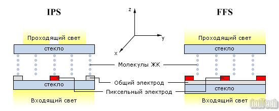 Во всех выпускаемых в настоящее время вариациях (S-IPS, AFFS, SA-SFT) используется 2-доменная конструкция ячейки.